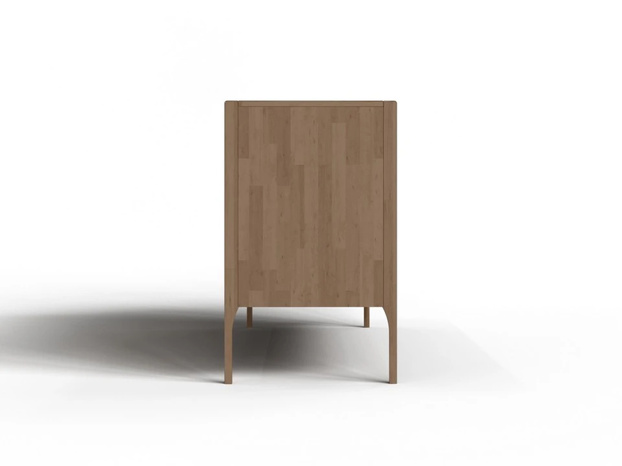 Материалы: корпус, фасады, опоры — массив дерева; задняя стенка — МДФ; ящики — ЛДСП Бунратти.