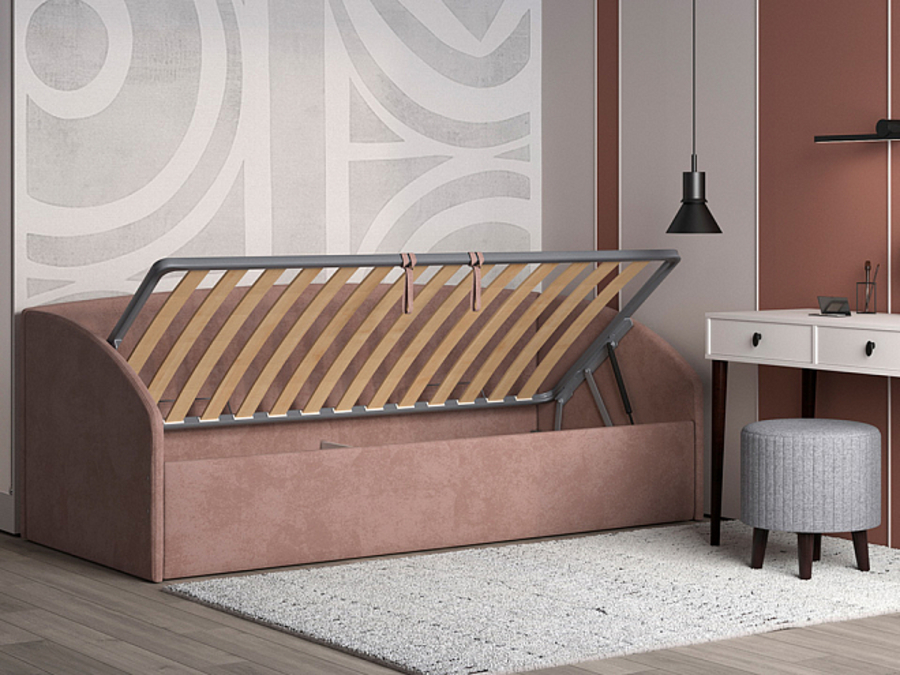 - Встроенное ортопедическое основание с механизмом подъема выдерживает 150 кг на одно спальное место.