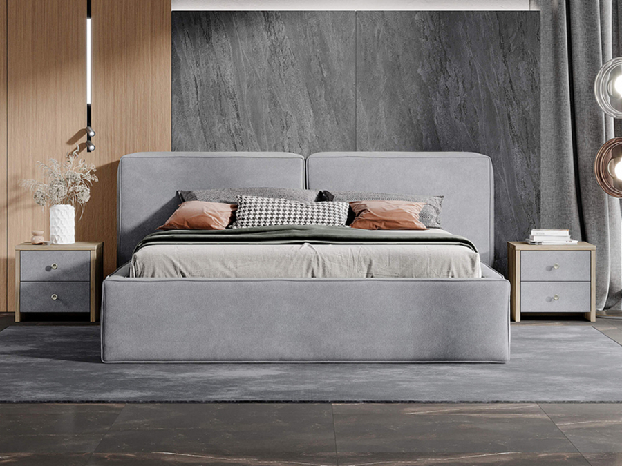 Кровать Europa в современном стиле, стиле лофт и минимализм. Спинка выполнена в виде двух объемных подушек. Широкие царги опущены до пола, а декоративный кант подчеркивает строгость и брутальность. Увеличенная прочность достигается за счет внутреннего металлического каркаса по периметру кровати.