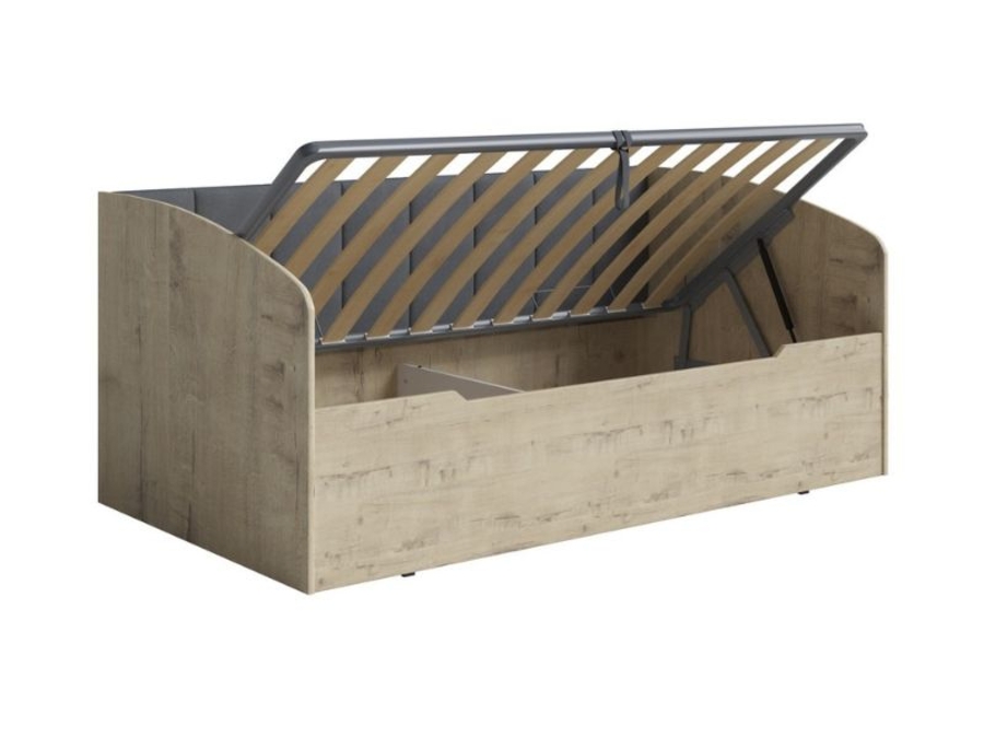 В комплекте к кровати идет встроенное деревянное основание с подъемным механизмом, способное выдержать до 120 кг на одно спальное место.
